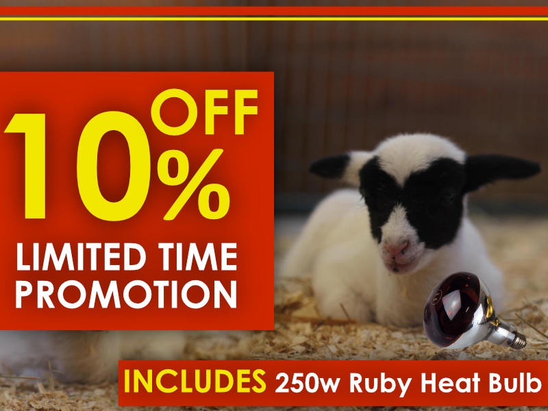 Equipped with a hardened, INFRARED BULB built to last, with a 5000hr lifespan. Providing a suitable warmth for brooding chicks, new born lambs, whelping boxes and more.